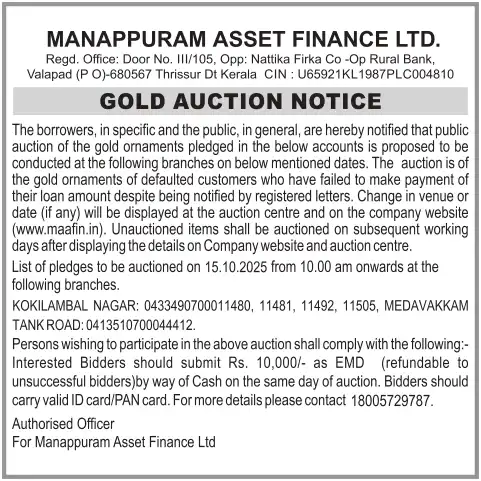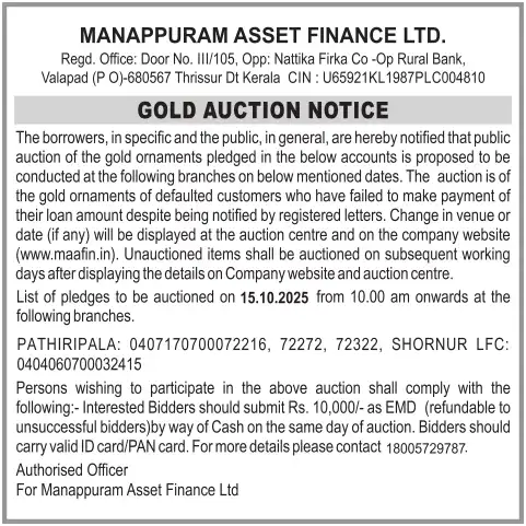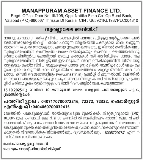 OCTOBER MONTH AUCTION ON 15.10.2025 KERALA MALAYALAM