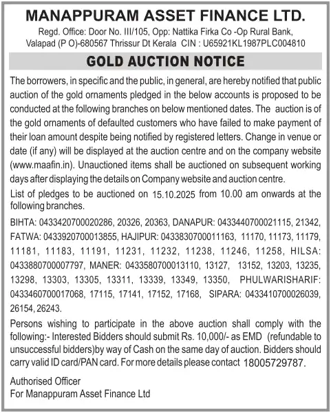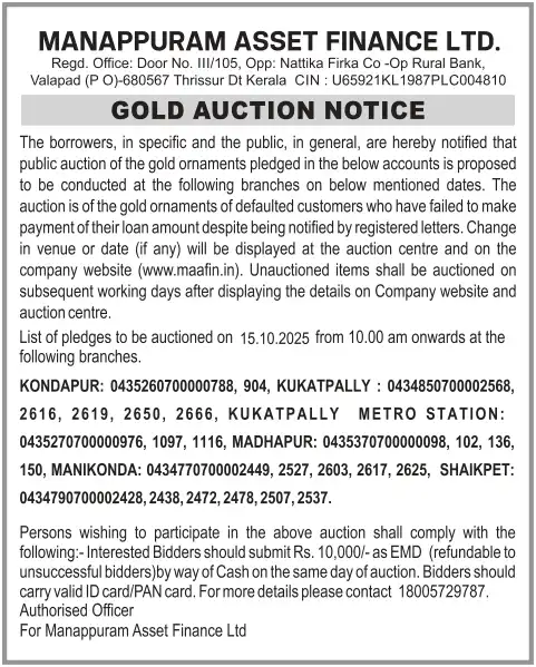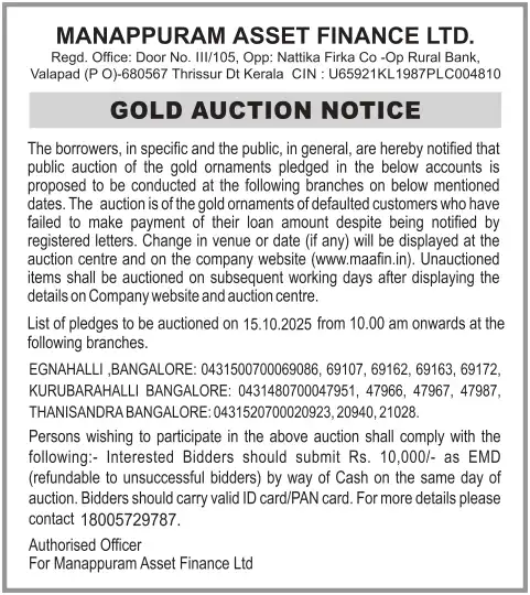 OCTOBER MONTH AUCTION ON 15.10.2025 KERALA ENGLISH