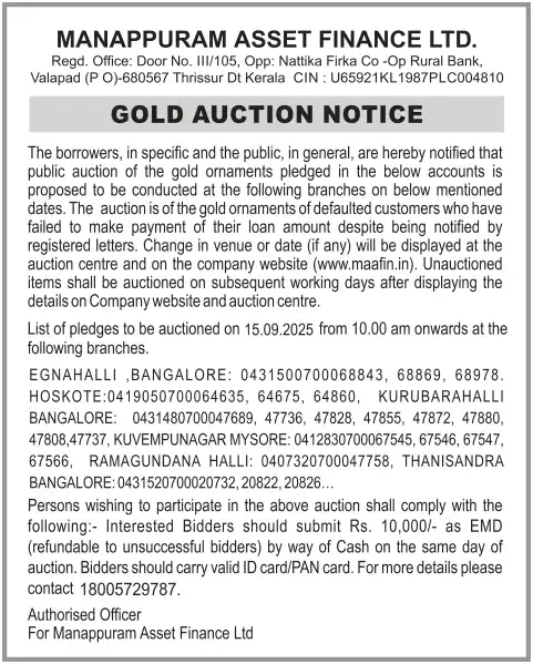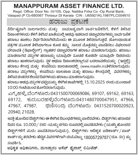 SEPTEMBER MONTH AUCTION ON 15.09.2025 KARNATAKA KANNADA