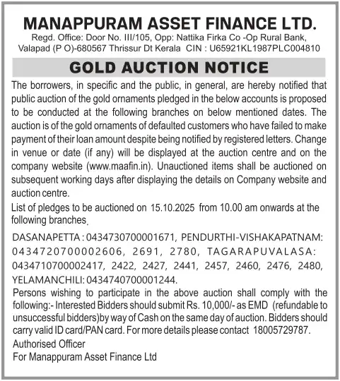 OCTOBER MONTH AUCTION ON 15.10.2025 ANDHRA PRADESH TELUGU