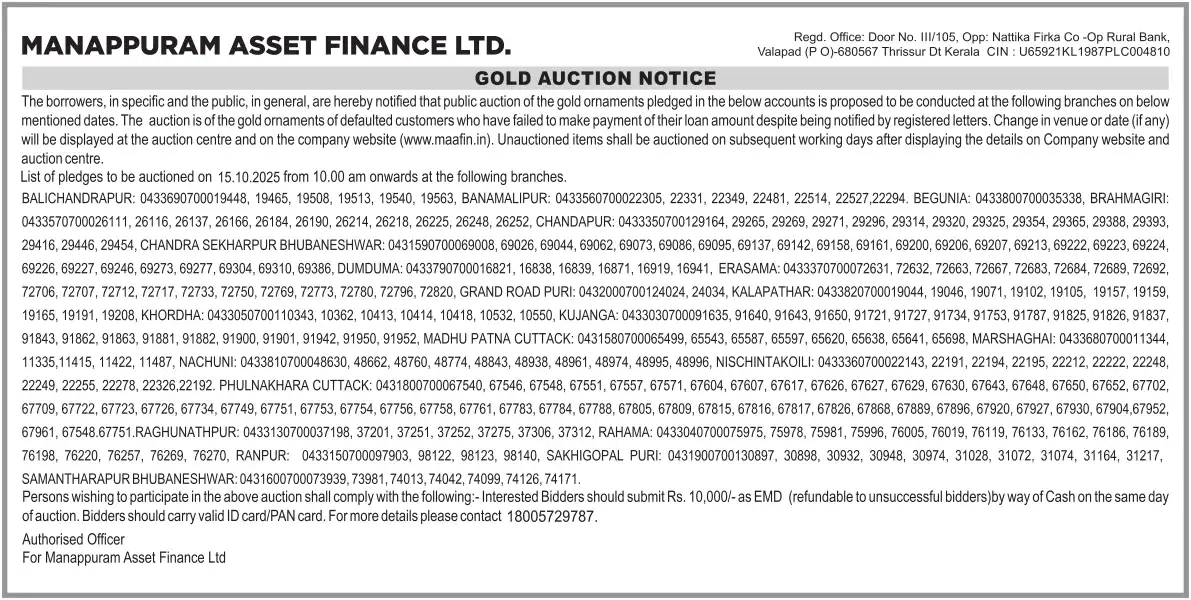 OCTOBER MONTH AUCTION ON 15.10.2025 ODISHA ENGLISH