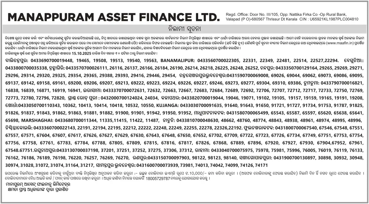 OCTOBER MONTH AUCTION ON 15.10.2025 ODISHA ODIYIA