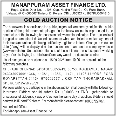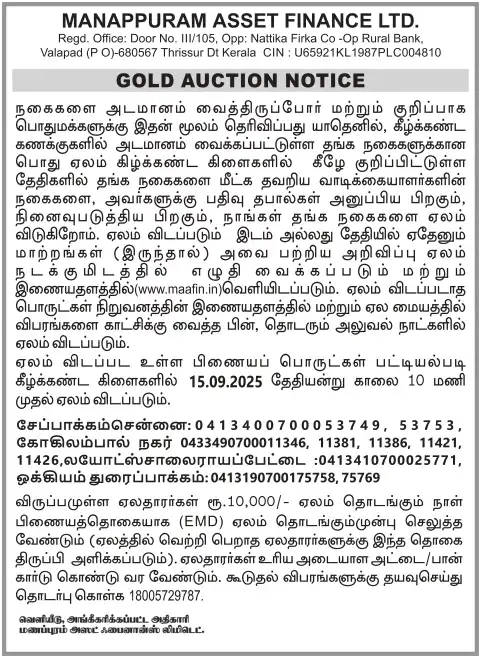 SEPTEMBER MONTH AUCTION ON 15.09.2025 CHENNAI TAMIL