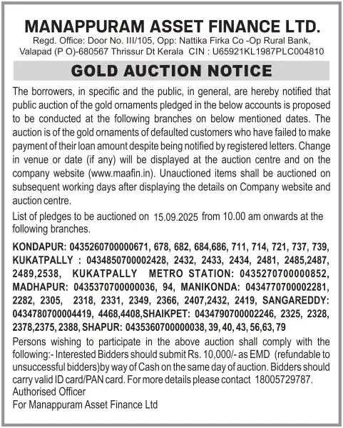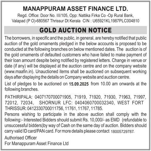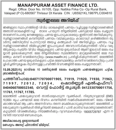 SEPTEMBER MONTH AUCTION ON 15.09.2025 KERALA MALAYALAM