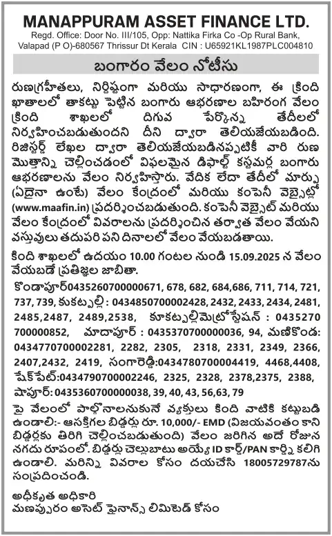 SEPTEMBER MONTH AUCTION ON 15.09.2025 TELANGANA TELUGU