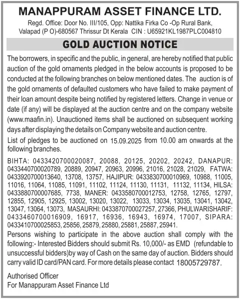 SEPTEMBER MONTH AUCTION ON 15.09.2025 BIHAR HINDI