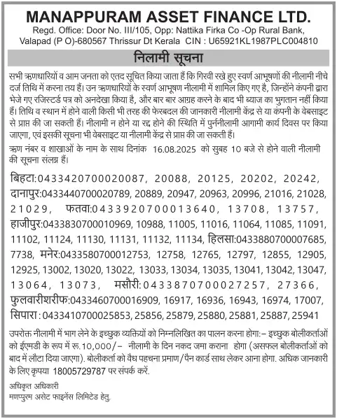 AUGUST MONTH AUCTION ON 16.08.2025BIHAR HINDI