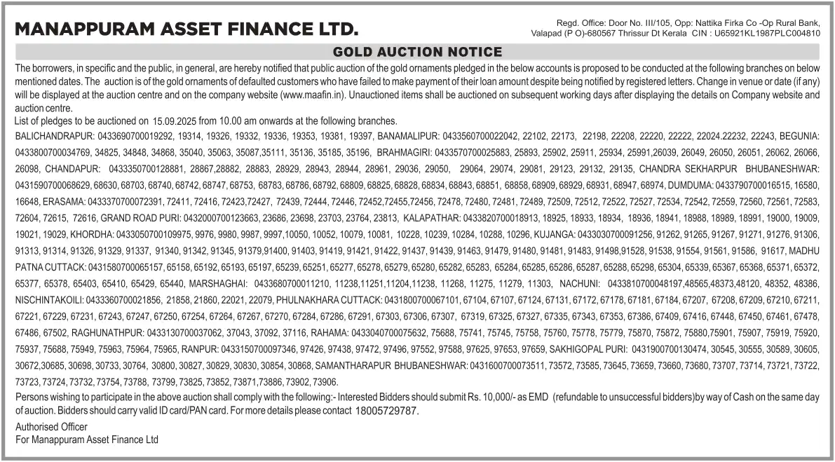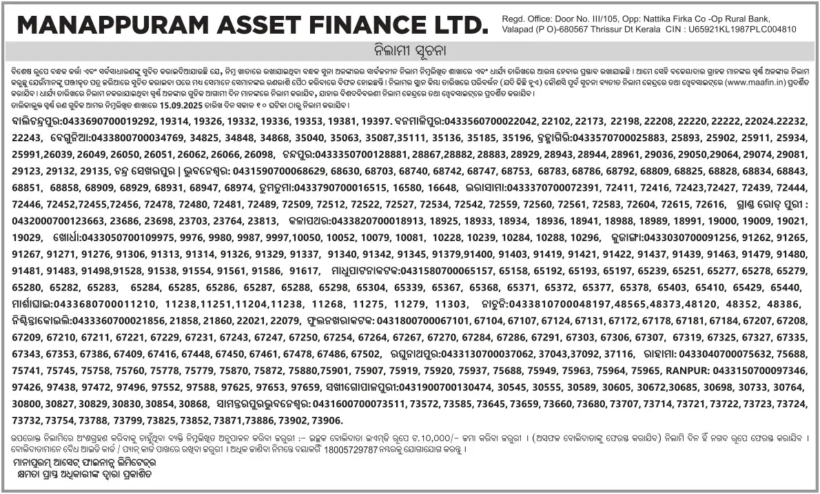 SEPTEMBER MONTH AUCTION ON 15.09.2025 ODISHA ODIYIA