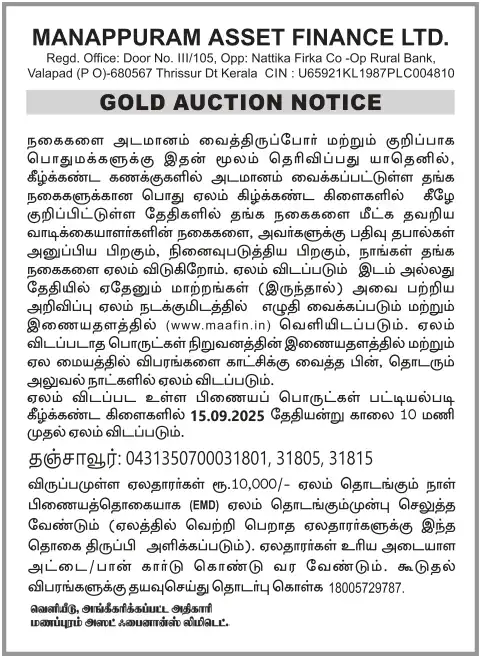 SEPTEMBER MONTH AUCTION ON 15.09.2025 THANJAVUR TAMIL