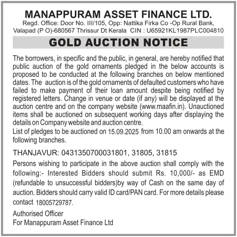 SEPTEMBER MONTH AUCTION ON 15.09.2025 THANJAVUR ENGLISH