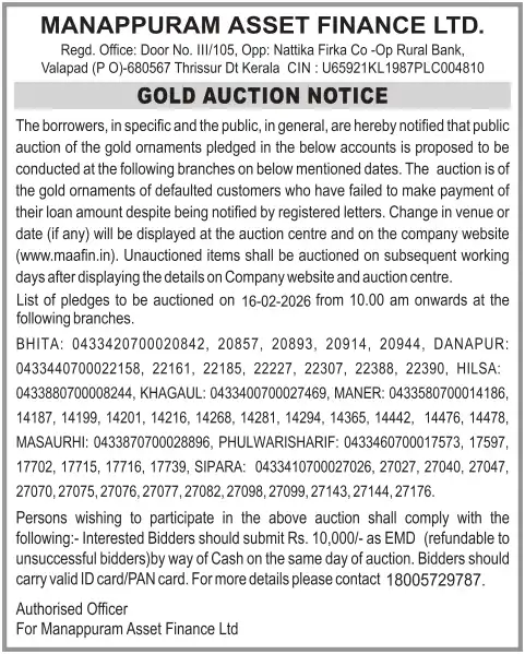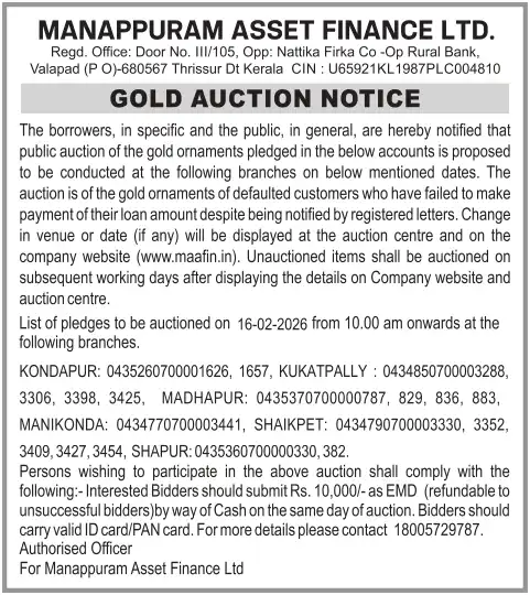 FEBRUARY MONTH AUCTION ON 16.02.2026 KERALA MALAYALAM